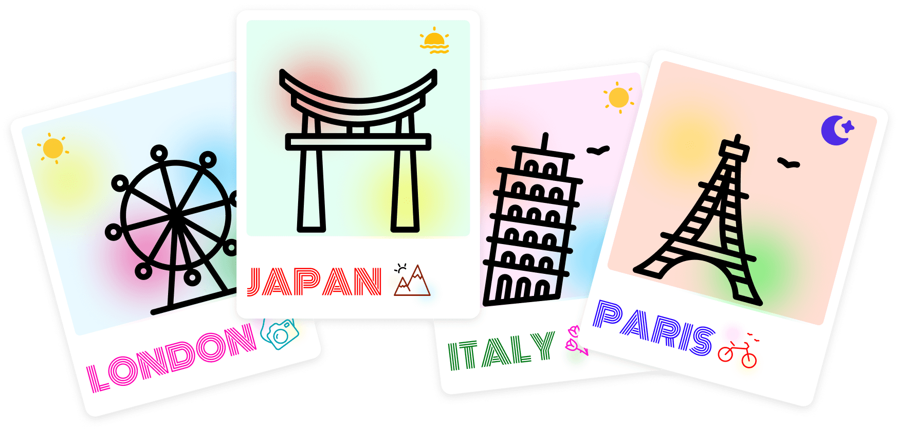 A thoughtfully crafted collection of 42 icons capturing the beauty of landscapes, travel essentials, and iconic landmarks. Designed with clean lines and visual harmony. Perfect for travel digital products, blogs, postcards and stickers.